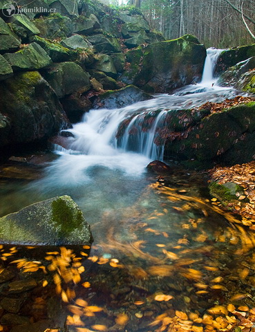 Průrva s vodopády a peřejemi, poblíž skalní vyhlídka Peklo. |