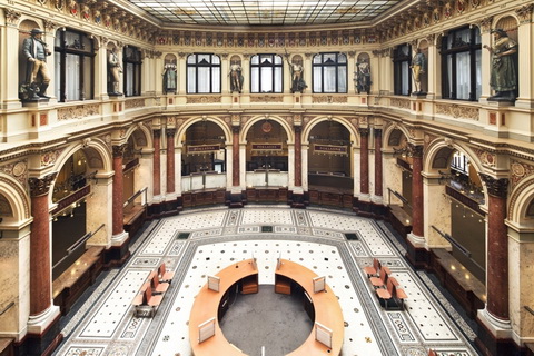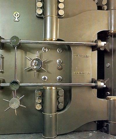 Muzeum moderního skla, v bývalém trezoru prodejna. |